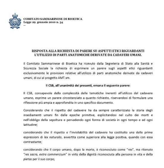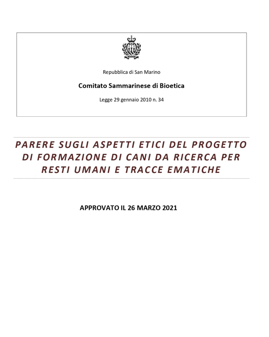 Parere sugli aspetti etici del progetto di formazione di cani da ricerca per resti umani e tracce ematiche