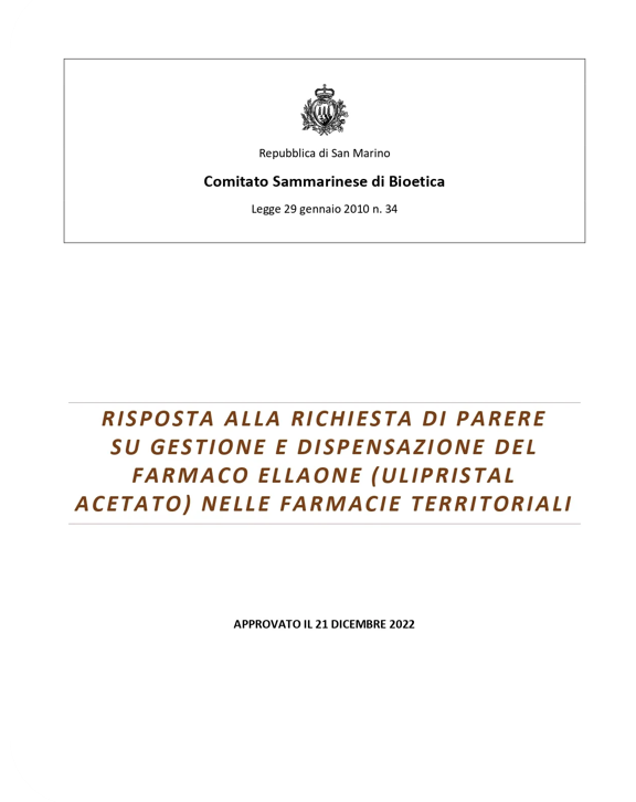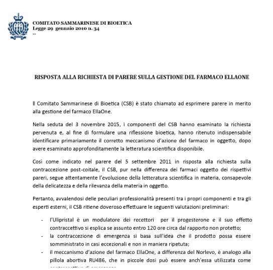 Risposta alla richiesta di parere su gestione e dispensazione del farmaco Ellaone (ulipristal acetato) nelle farmacie territoriali