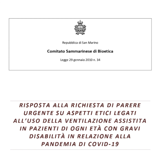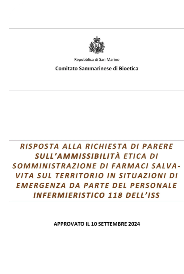 Risposta alla richiesta di parere sull’ammissibilità etica di somministrazione di farmaci salva-vita sul territorio in situazioni di emergenza da parte del personale infermieristico 118 dell’ISS